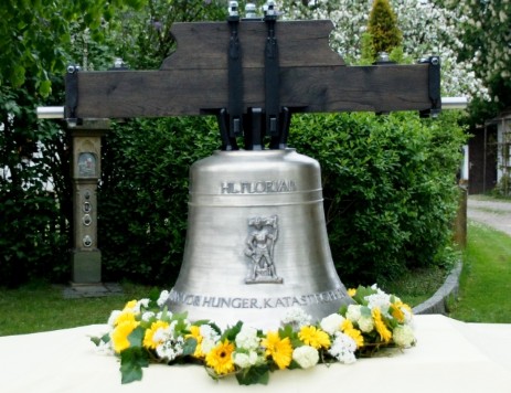 Die zweite Glocke, geweiht dem hl. Florian, Gewicht 180 kg, Höhe 56 cm, Hauptton "des".